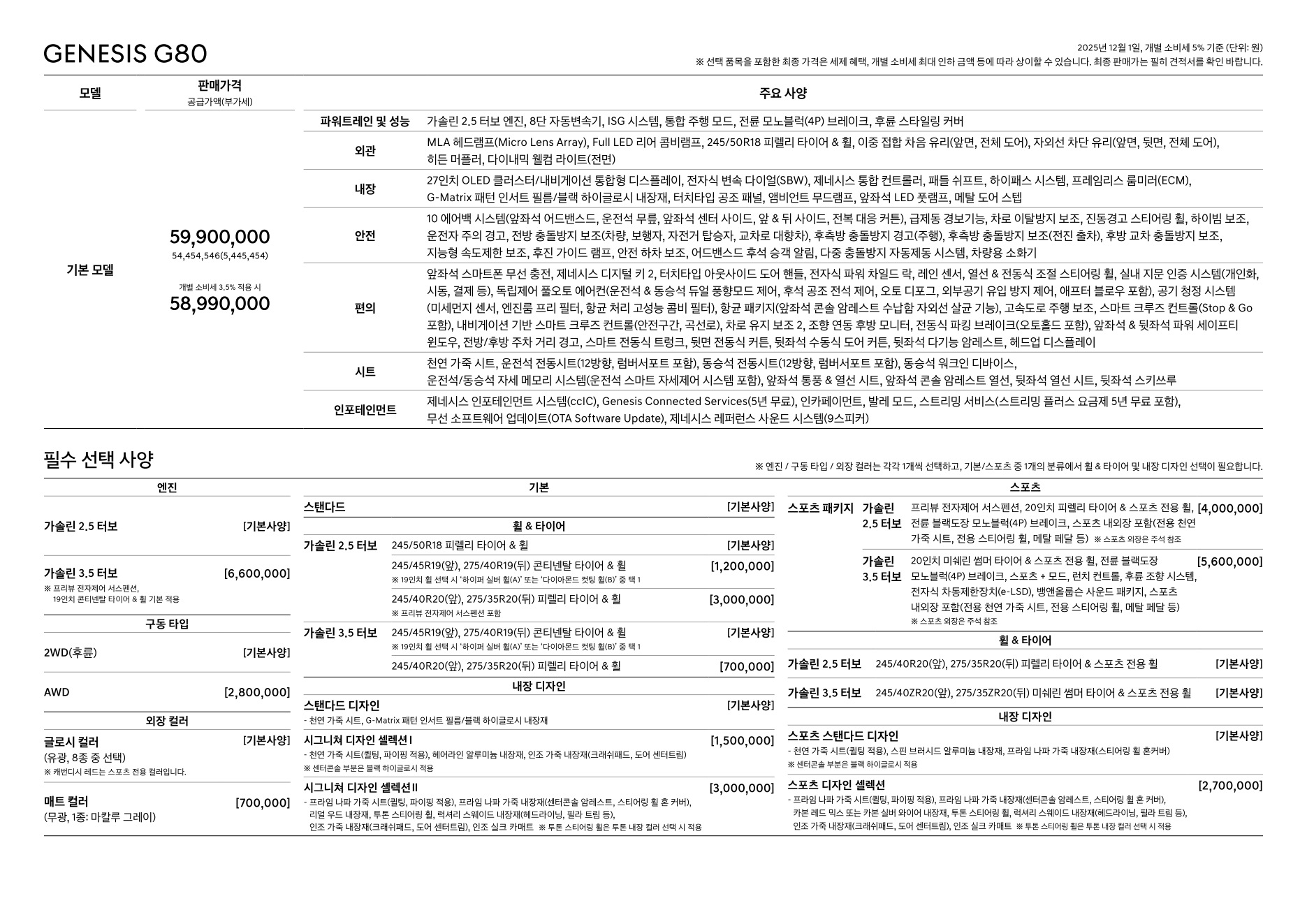 2025년 12월 일렉트릭파이드 G80 신차가격표 (G80전기차)