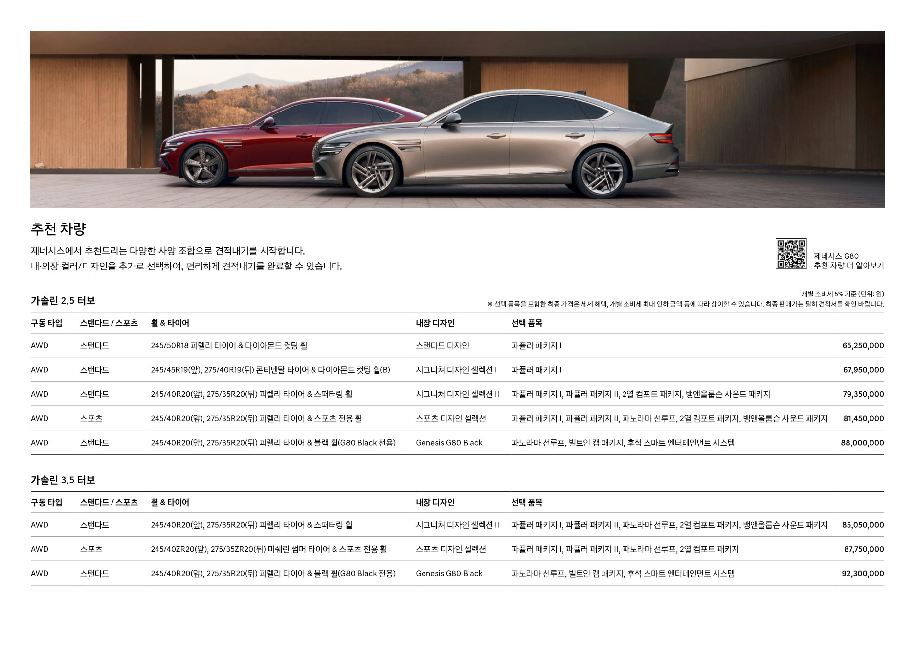 2025년 1월 제네시스G80 & G80 블랙 신차가격표 (2025년형 G80 출시, G80블랙 출시)