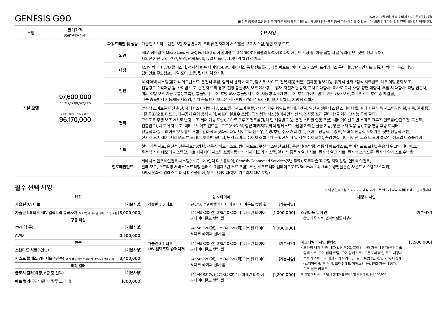 2025년 12월 G90 신차가격표