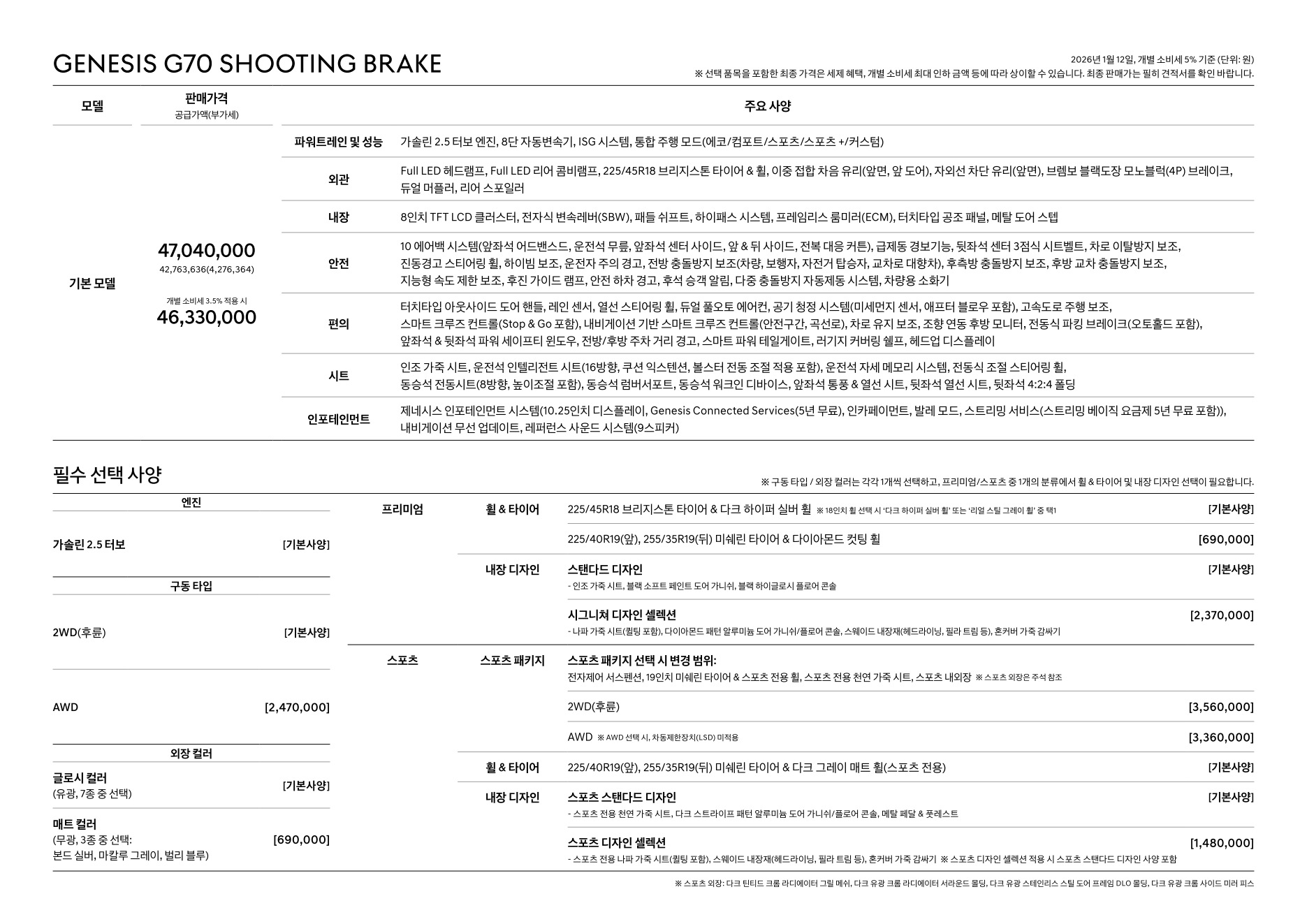 2026년 1월 G70 슈팅브레이크 가격표 (2026년형 G70 슈팅브레이크 출시)