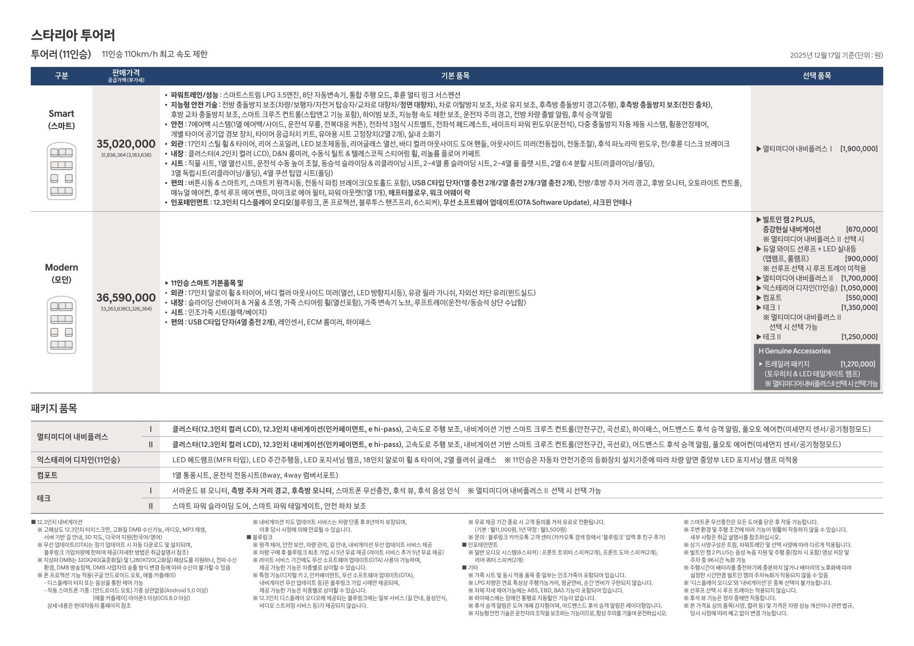 2025년 12월 스타리아 라운지 & 라운지 모빌리티 신차가격표 (더 뉴 스타리아 출시)