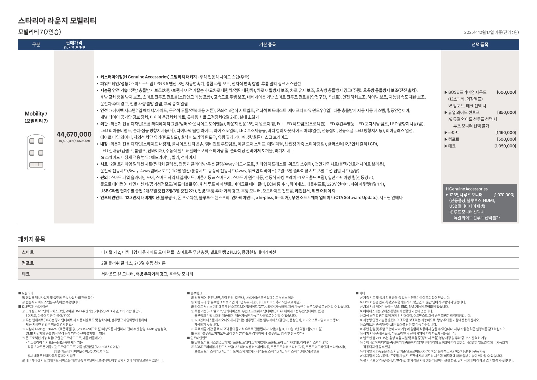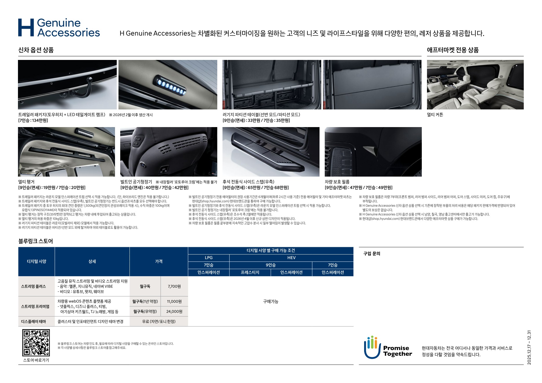 2025년 12월 스타리아 라운지 & 라운지 모빌리티 신차가격표 (더 뉴 스타리아 출시)