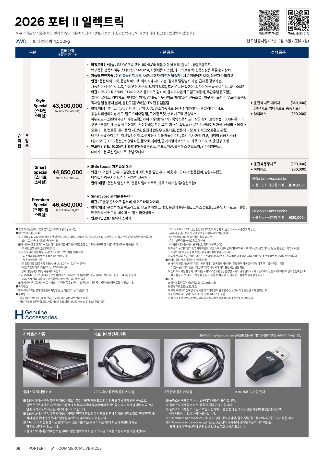 2025년 12월 포터 일렉트릭 신차가격표 (2026년형 포터 일렉트릭)