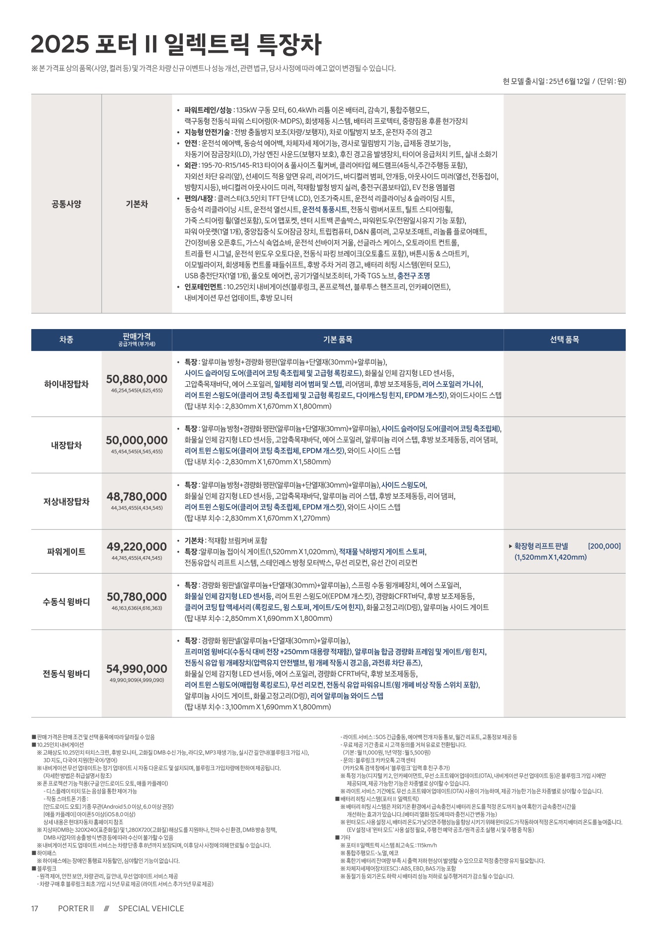 2025년 12월 포터 일렉트릭 특장차 신차가격표