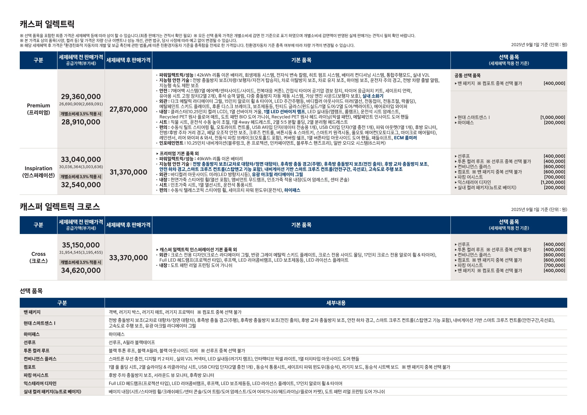 2025년 12월 캐스퍼 일렉트릭 신차가격표