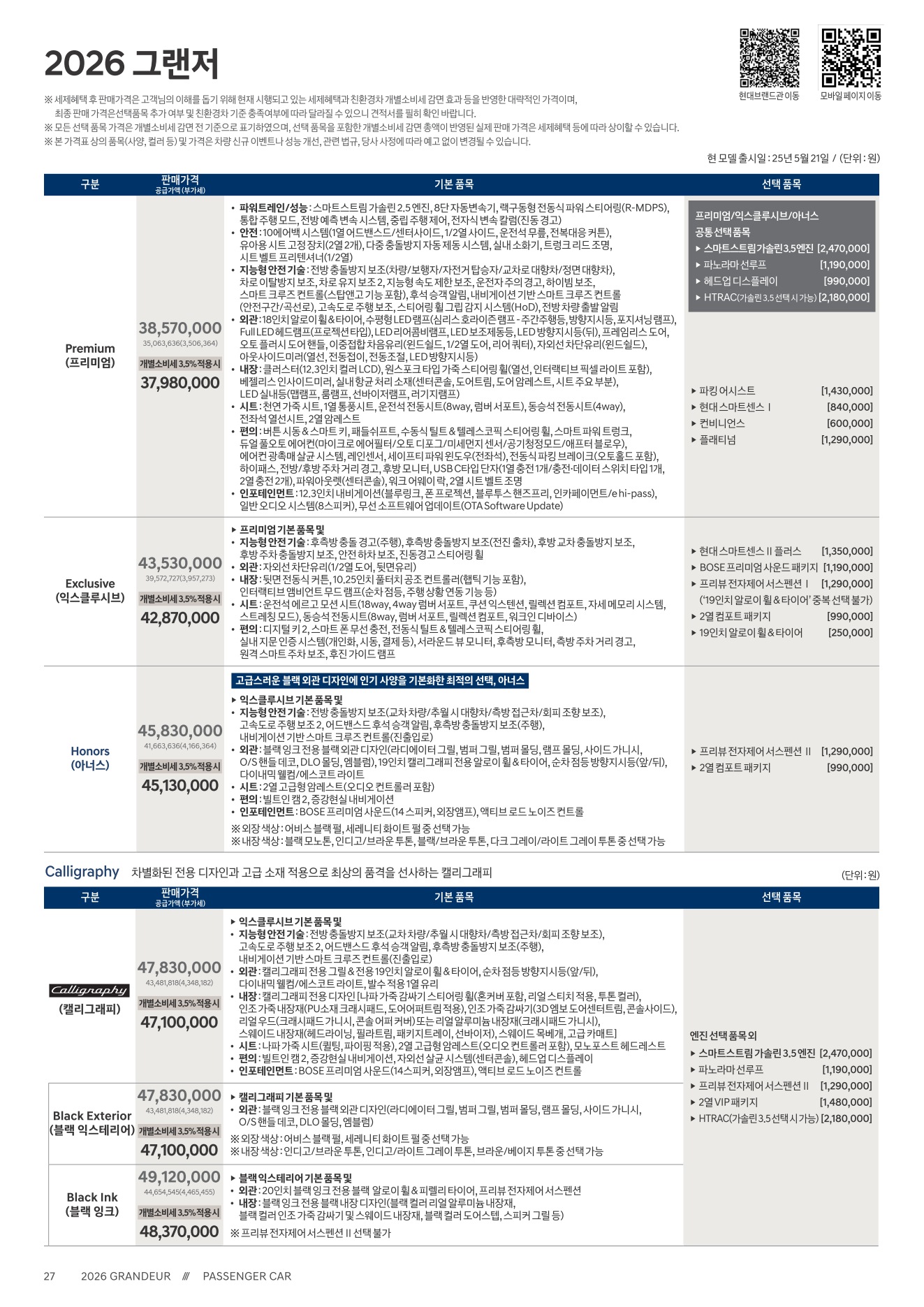 2025년 12월 쏘나타 하이브리드 신차가격표