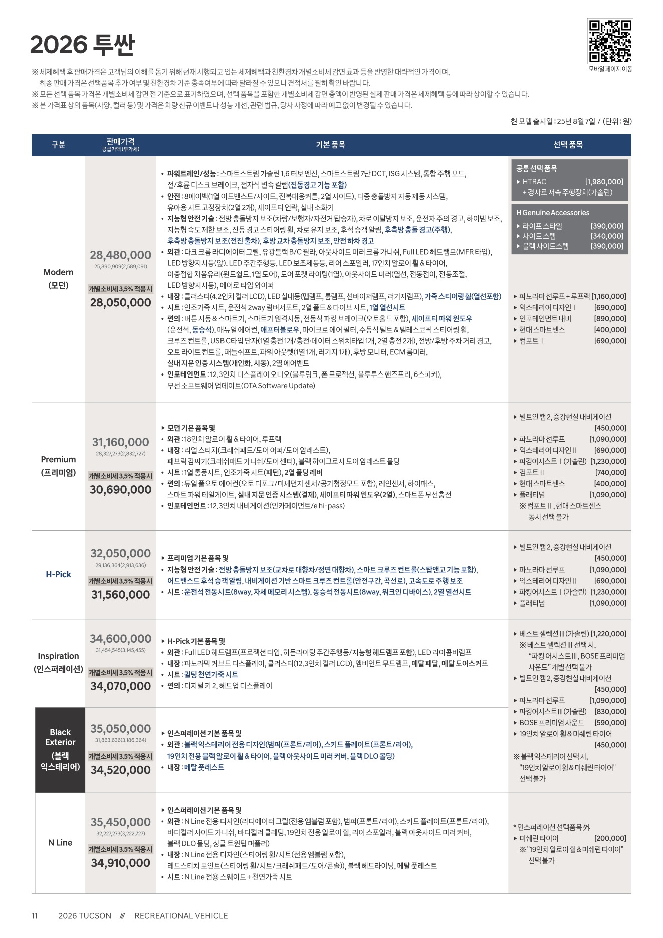 * 상기 가격표의 저작권은 해당 제조사에 있습니다.