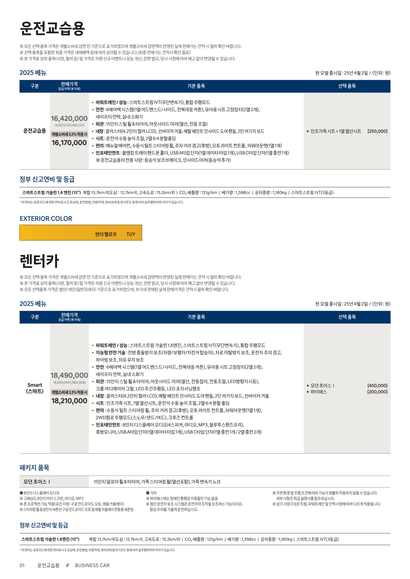 * 상기 가격표의 저작권은 해당 제조사에 있습니다.