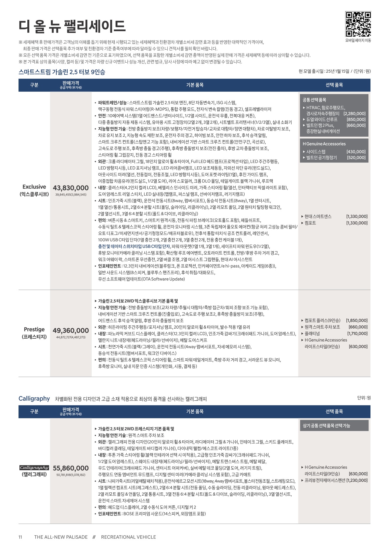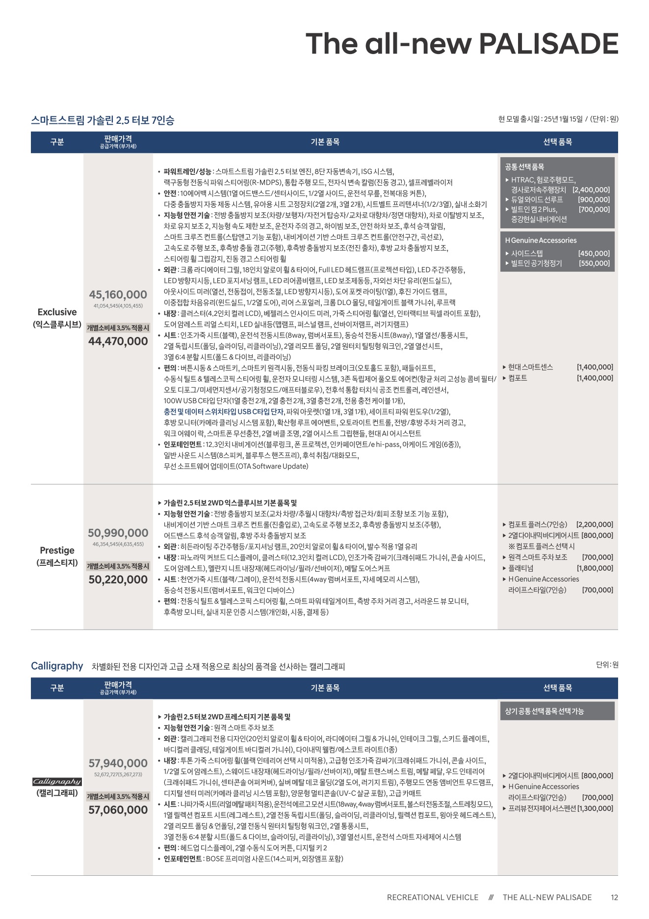 2025년 12월 펠리세이드 하이브리드 신차가격표