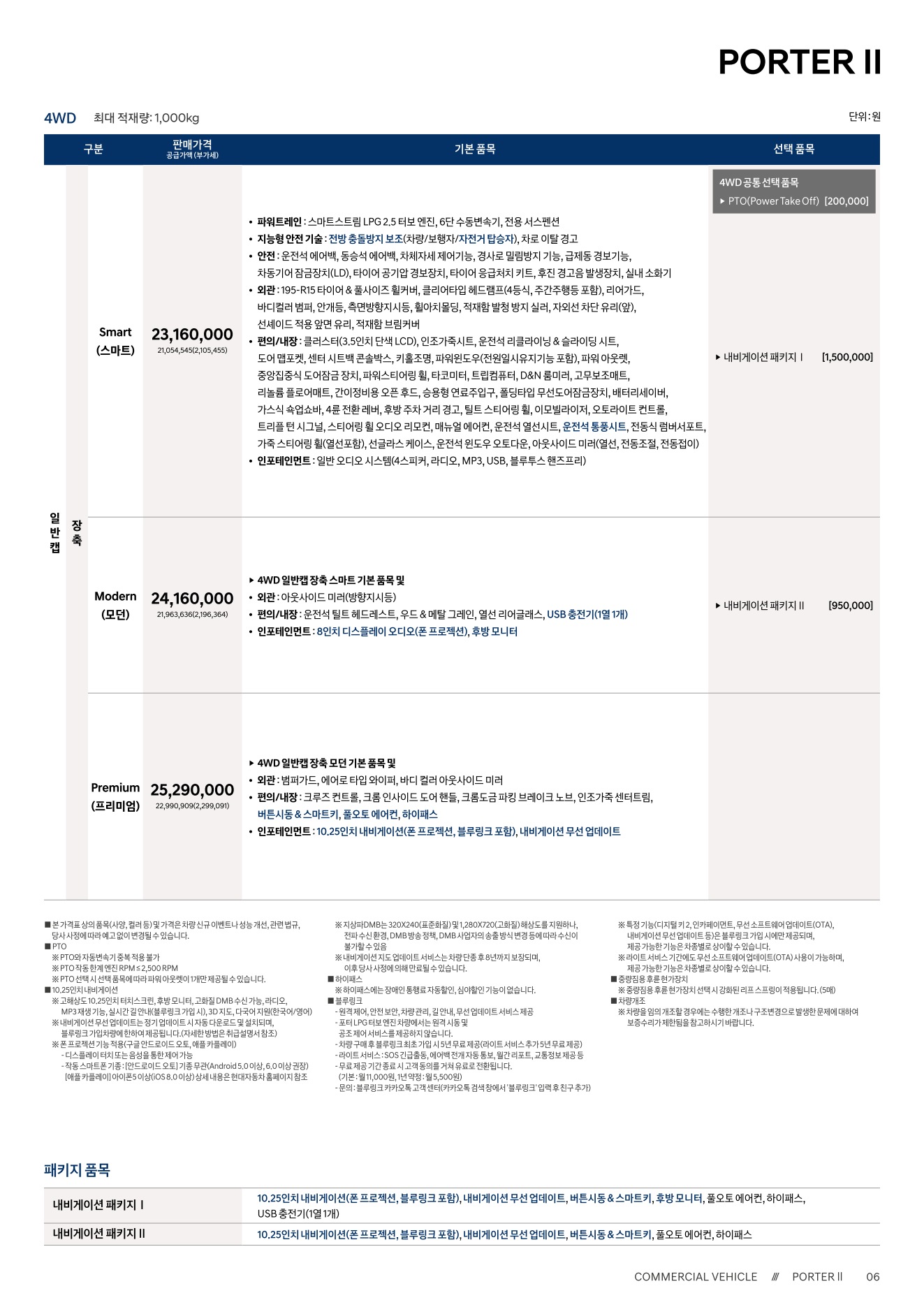 2025년 12월 포터2 신차가격표 (2026년형 포터2)