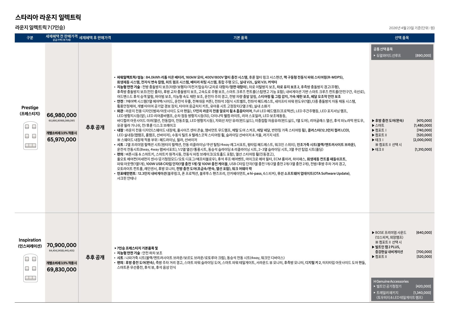 2026년 4월 스타리아 일렉트릭 신차가격표 (스타리아 전기차 출시)
