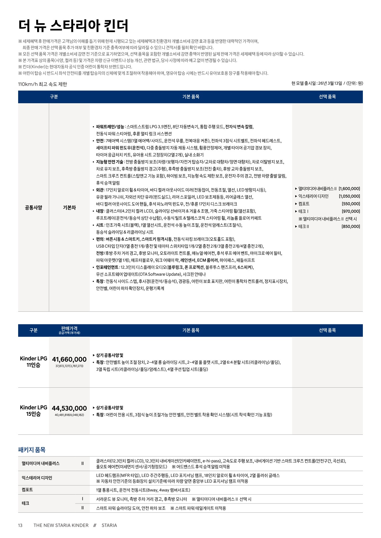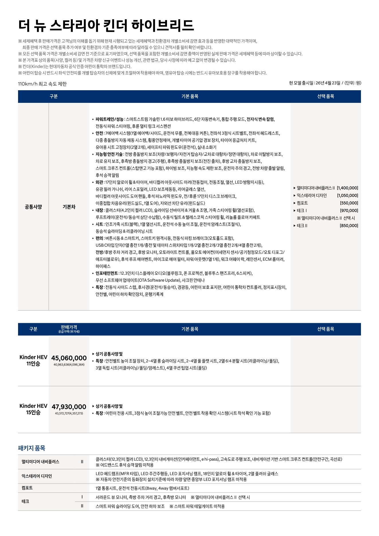 2026년 4월 스타리아 킨더 / 킨더 하이브리드 신차가격표 (킨더 하이브리드 출시)