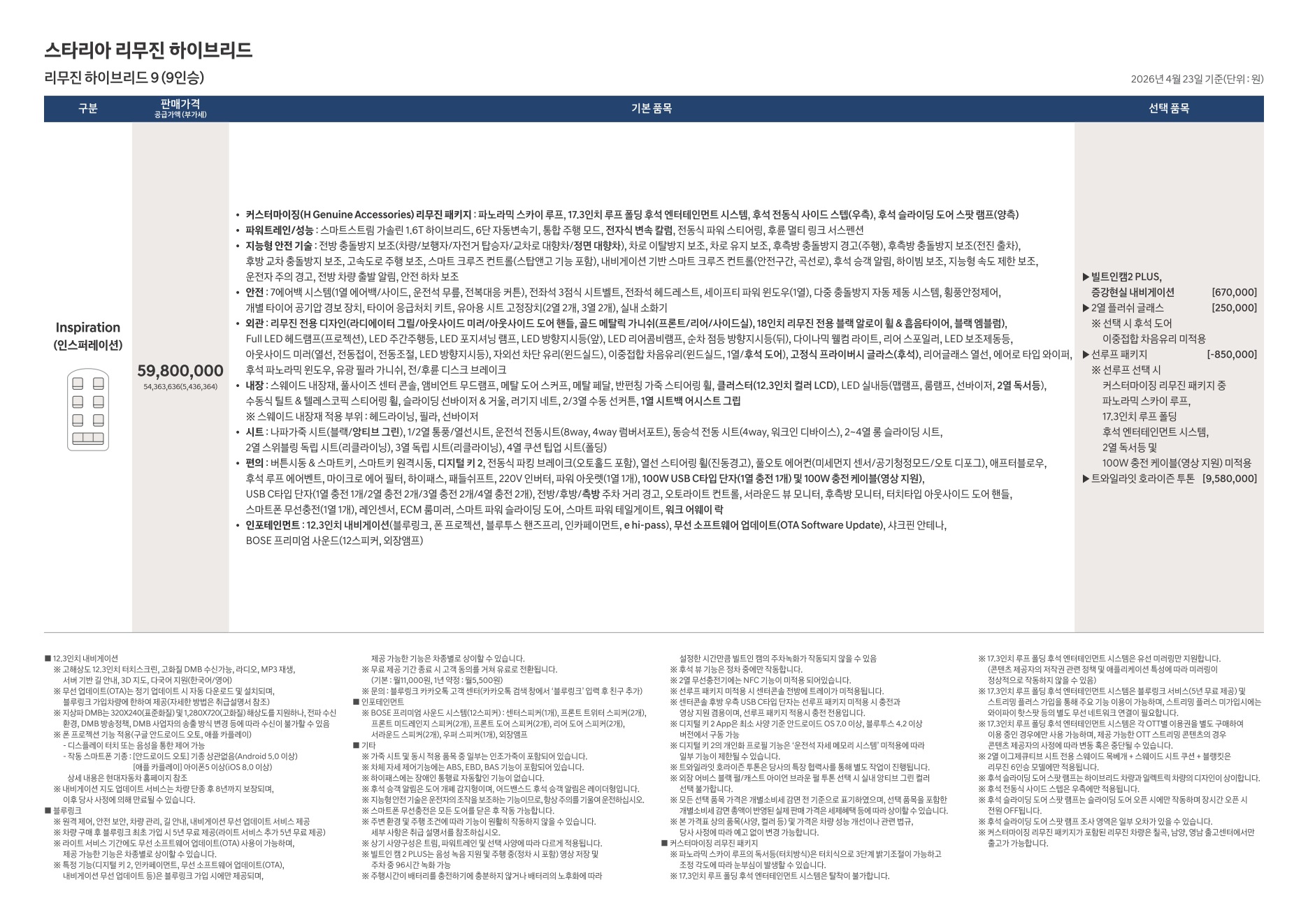 2026년 4월 스타리아 킨더 / 킨더 하이브리드 신차가격표 (킨더 하이브리드 출시)