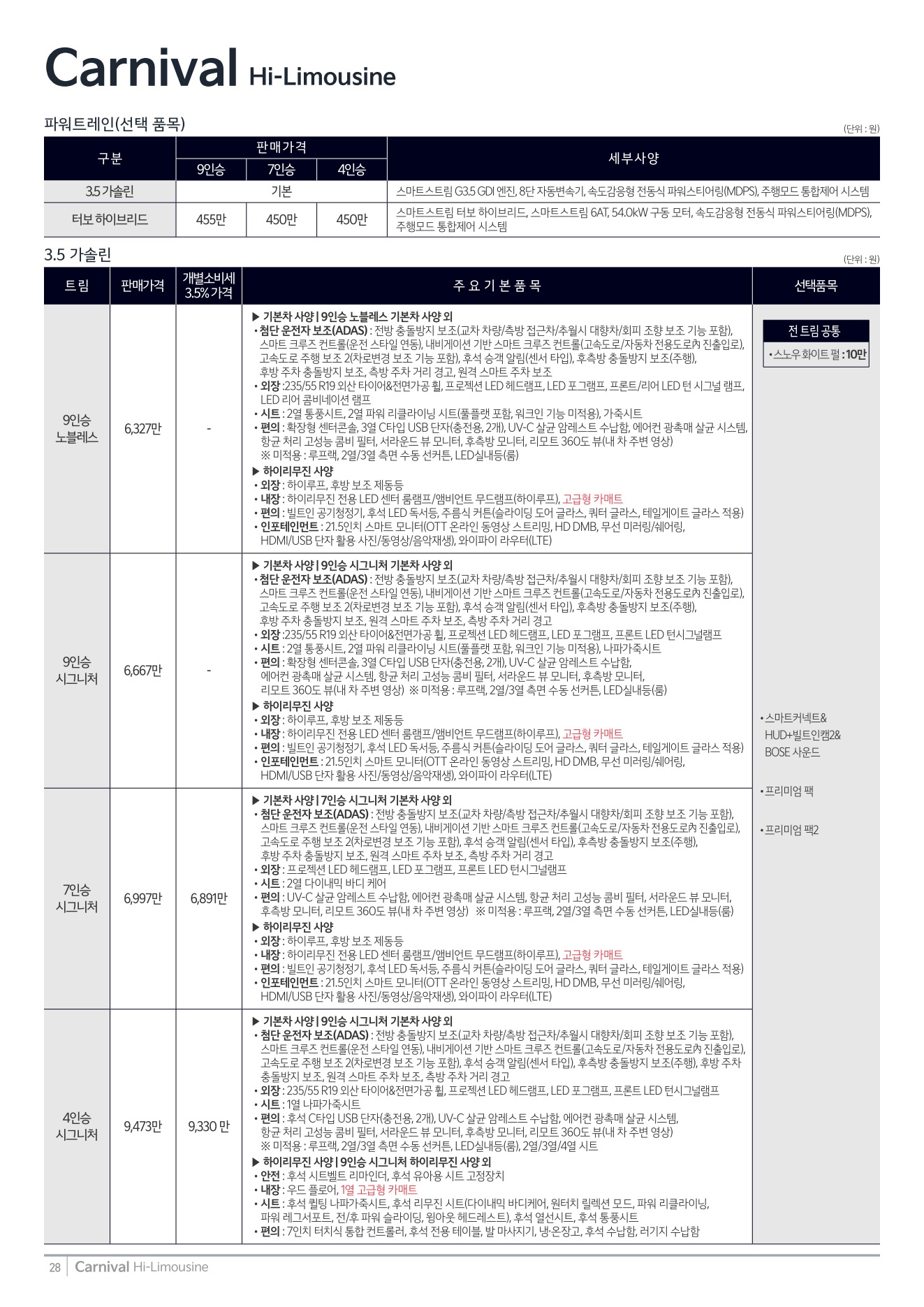 2025년 9월 카니발 하이리무진 신차가격표 (2026년형 카니발 하이리무진 출시)
