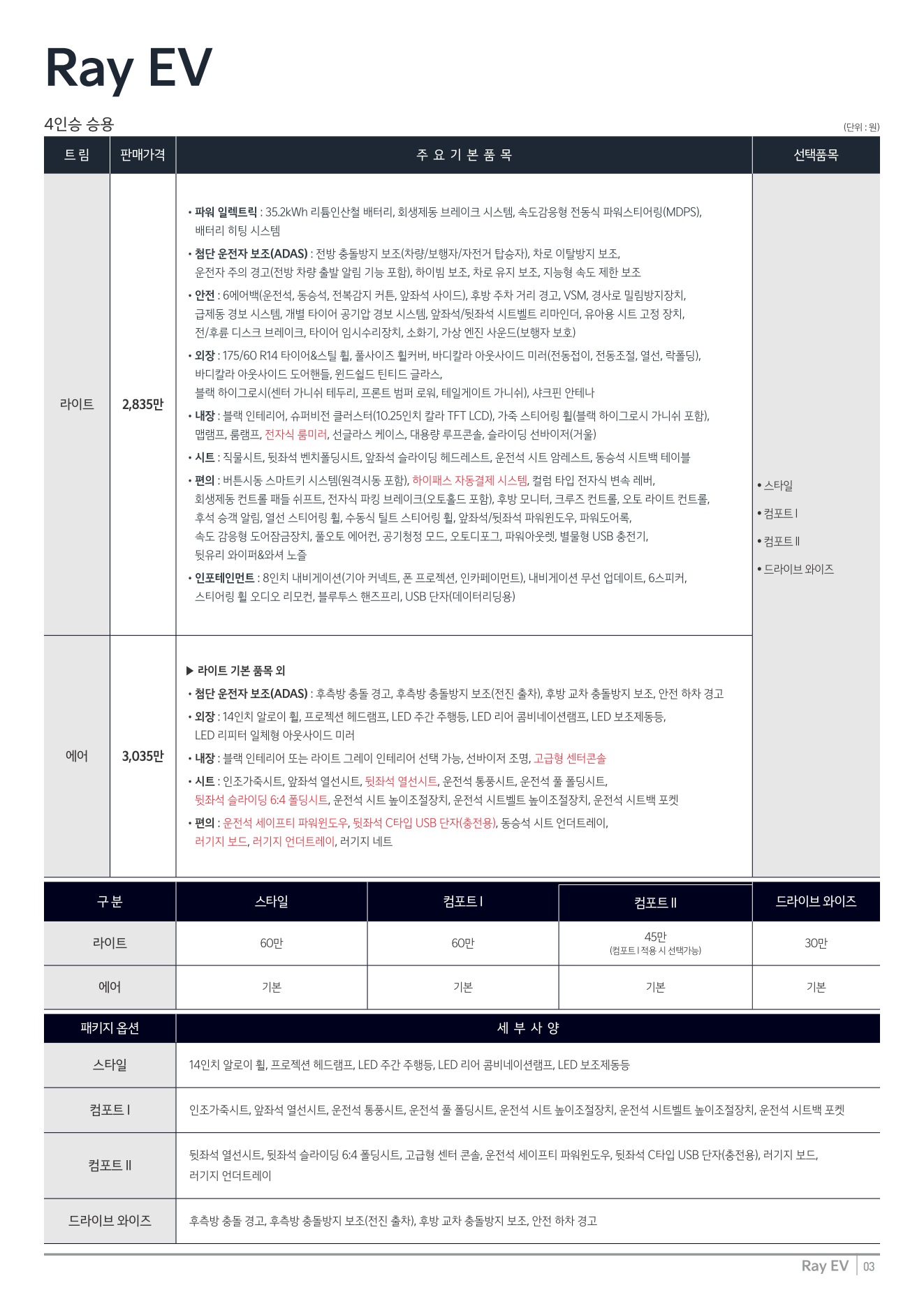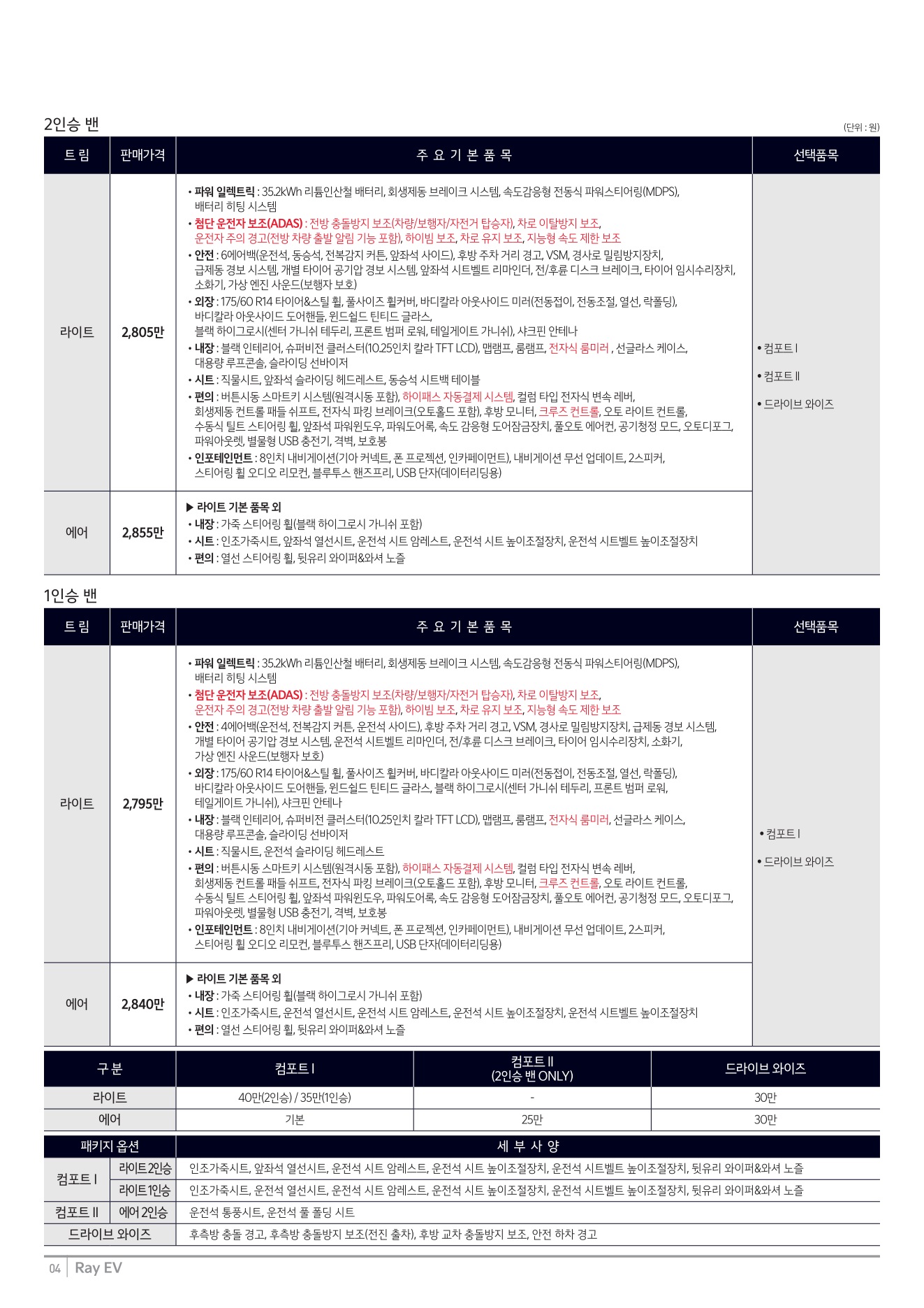 2025년 12월 레이EV 신차가격표