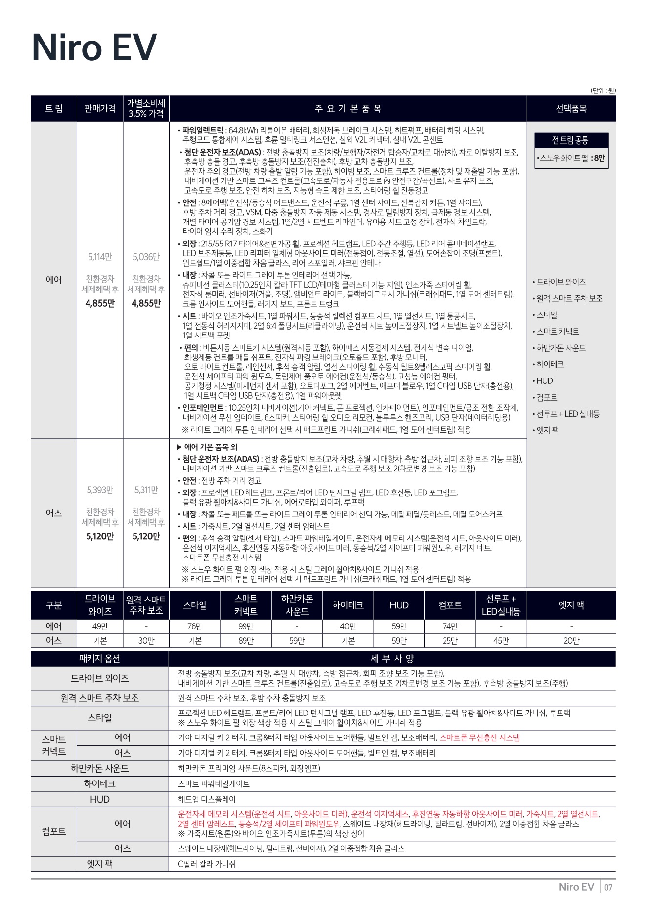 2025년 12월 니로EV 신차가격표