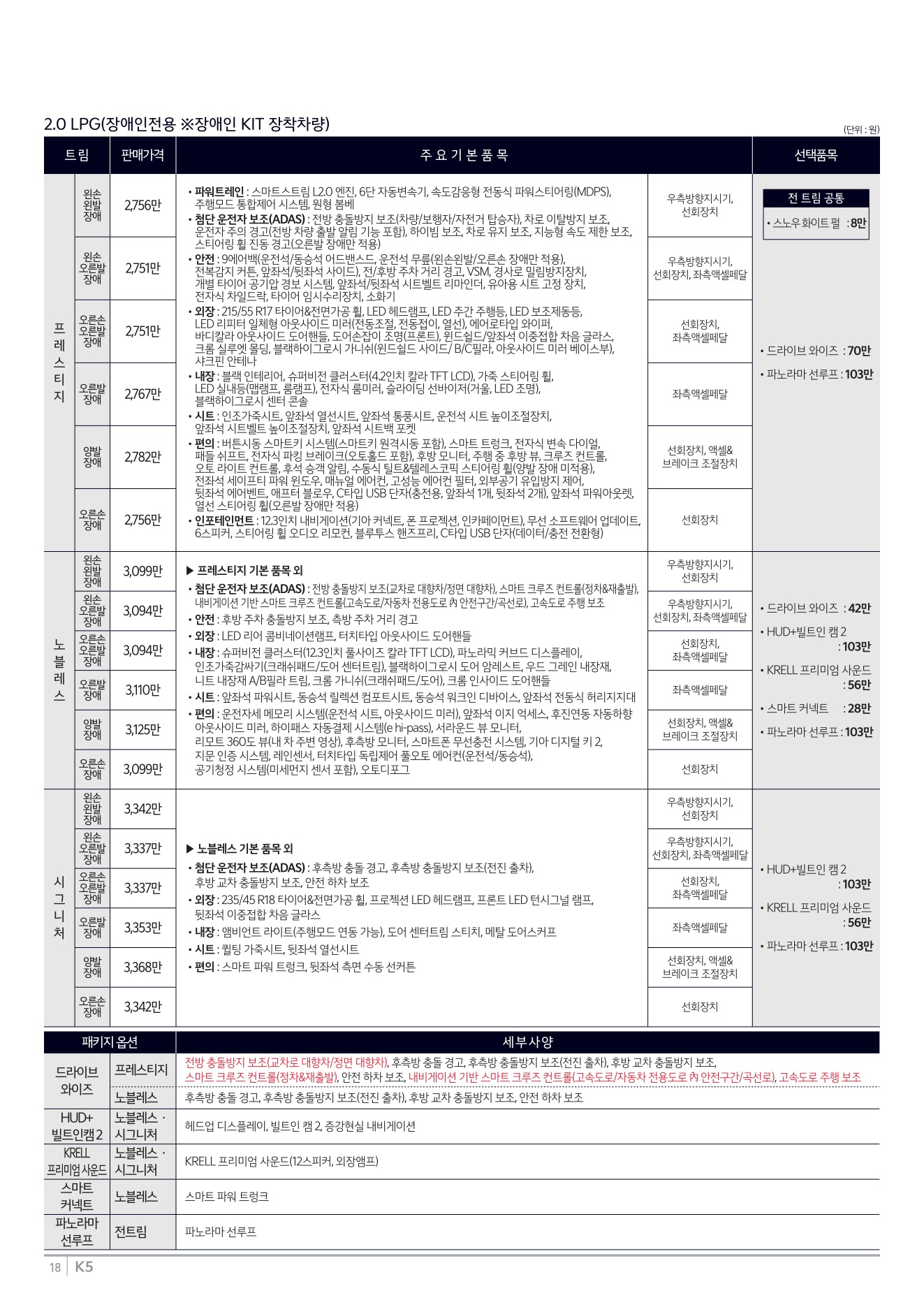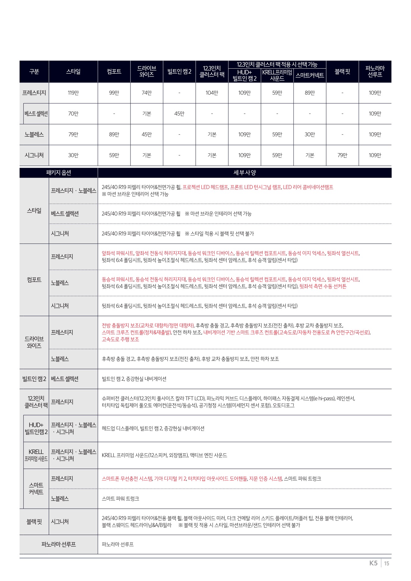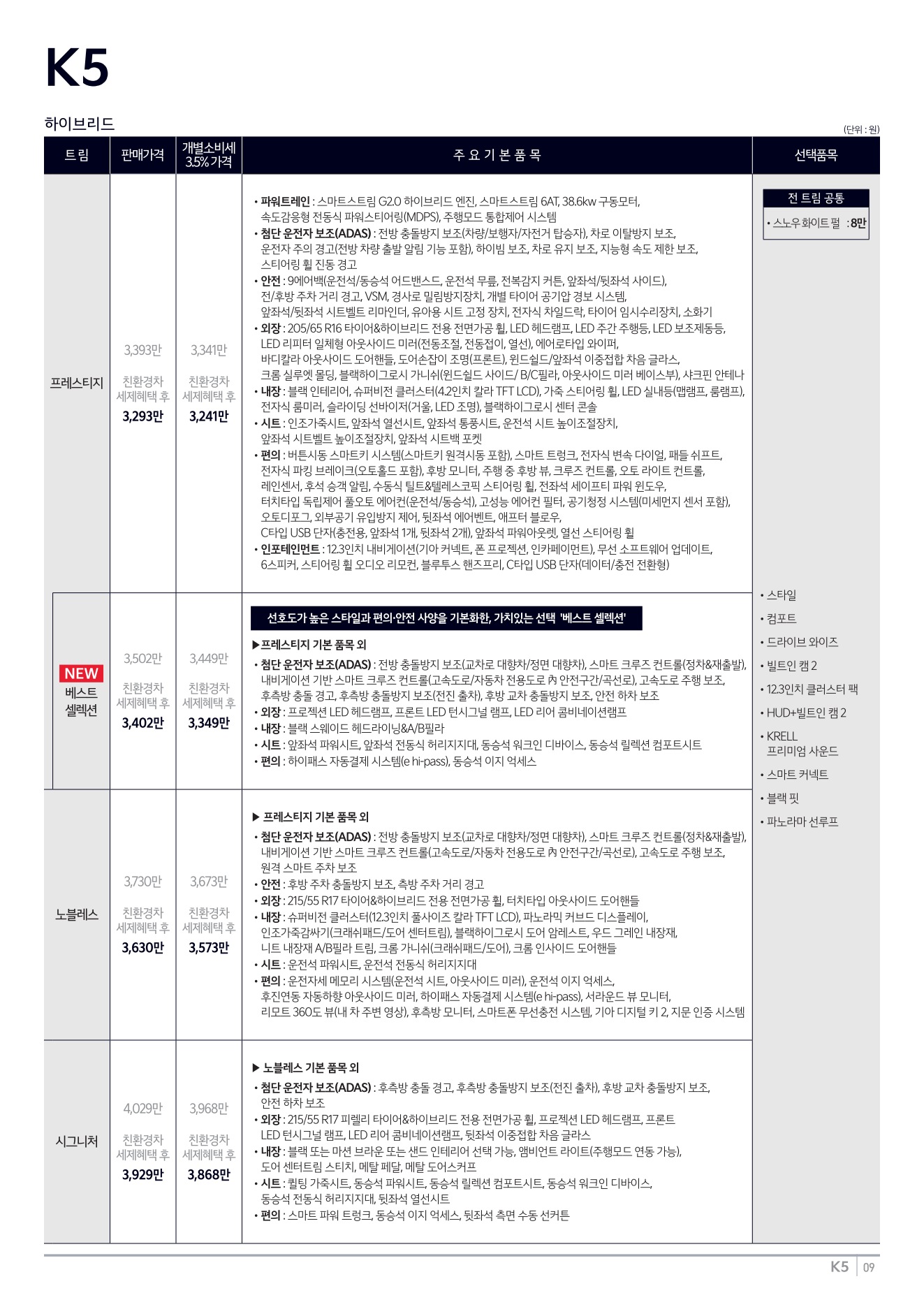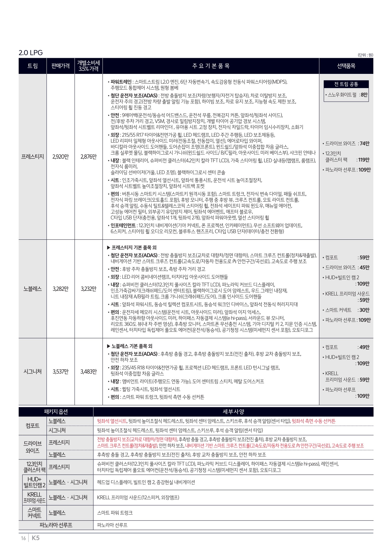 2025년 12월 K5 신차가격표