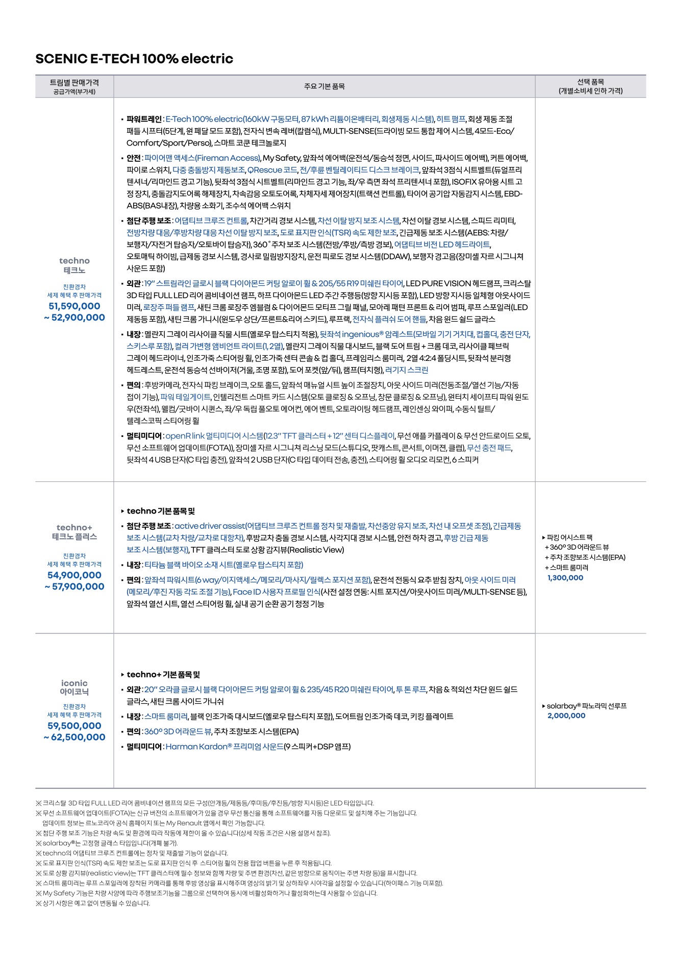 2025년 8월 세닉 신차가격표 (사전예약용)