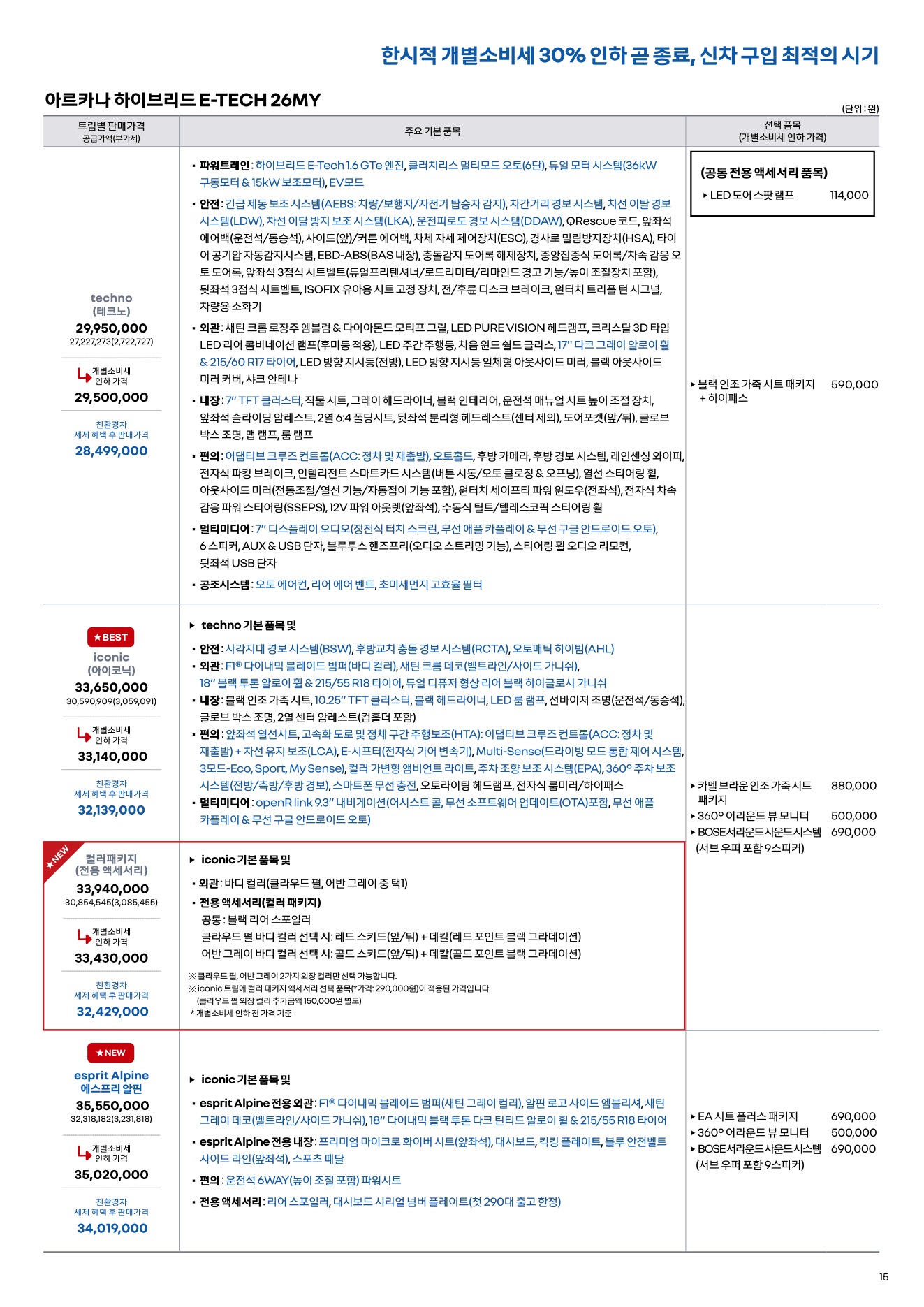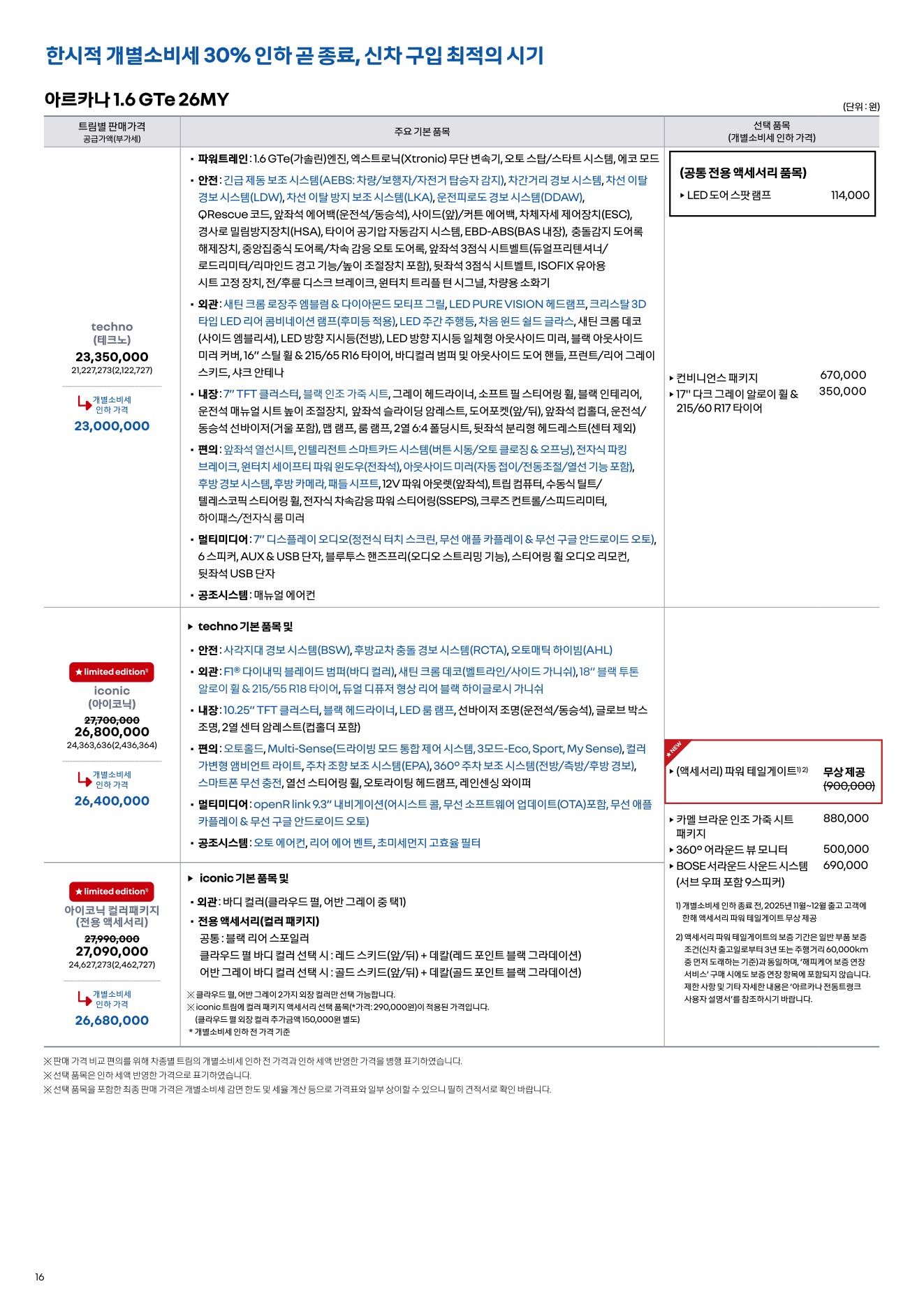 2025년 12월 아르카나 신차가격표