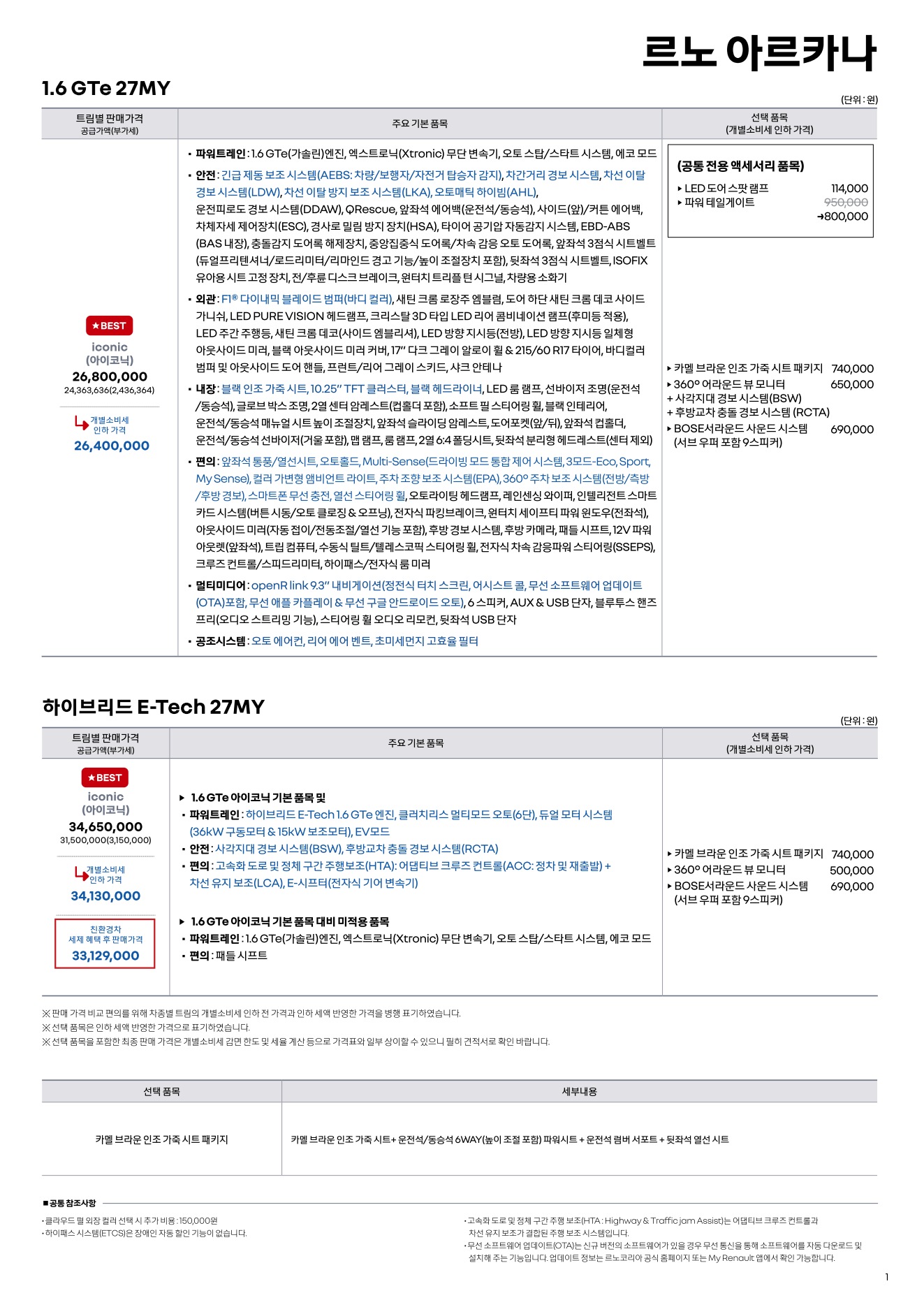 2026년 3월 아르카나 신차가격표 (2027년형 아르카나 출시)