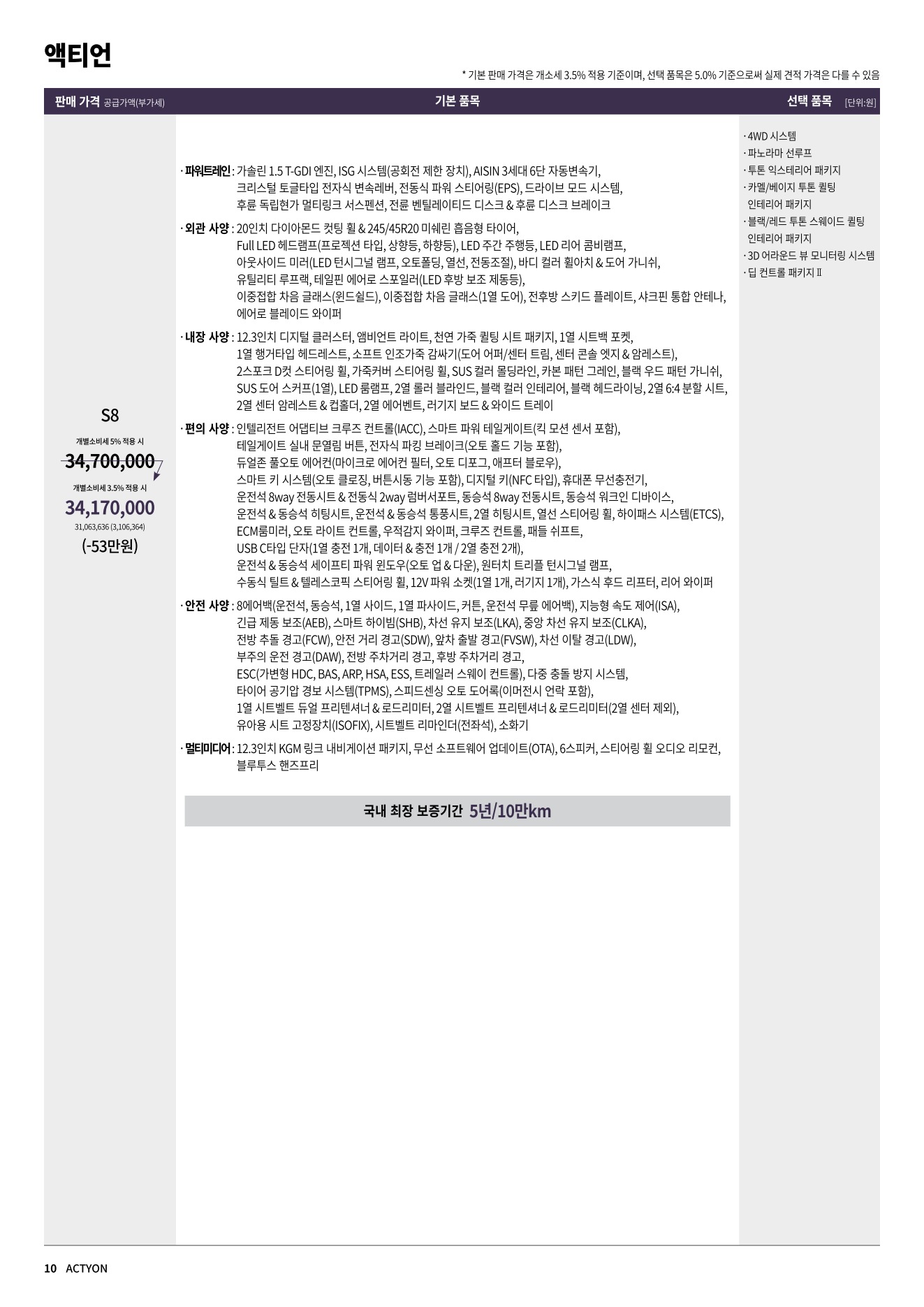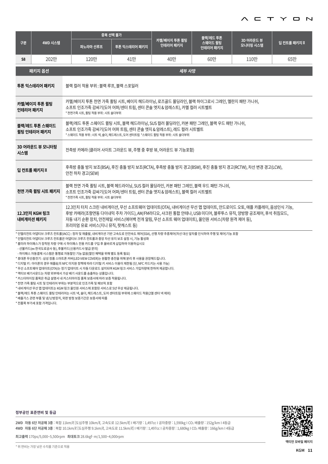 2025년 12월 액티언 신차가격표