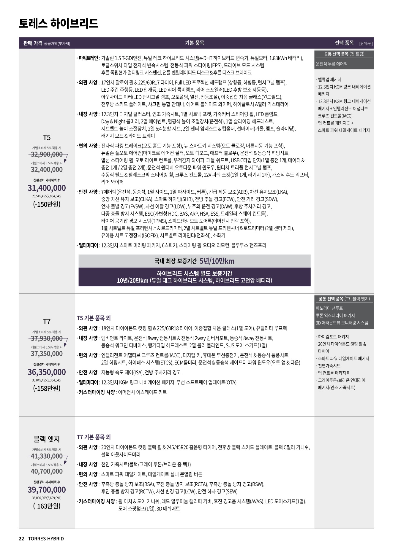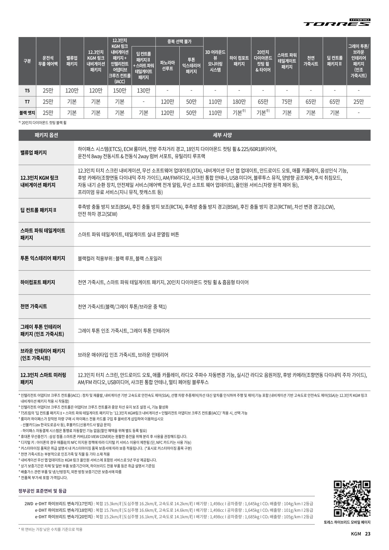 2025년 12월 토레스 하이브리드 신차가격표